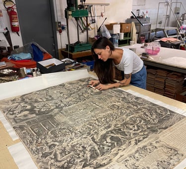 Restauro e conservazione di disegni, stampe, miniature, carte geografiche e opere grafiche storiche, con metodologie conformi agli standard istituzionali.