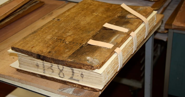 Restauro conservativo di documenti cartacei e membranacei, finalizzato al ricondizionamento dei supporti, al recupero della leggibilità e alla tutela nel lungo periodo.