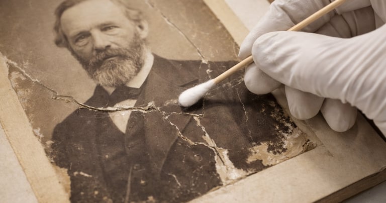 Interventi di restauro e conservazione di materiali fotografici storici, positivi e negativi, finalizzati alla stabilizzazione dei supporti, alla prevenzione del degrado e alla corretta conservazione nel tempo.