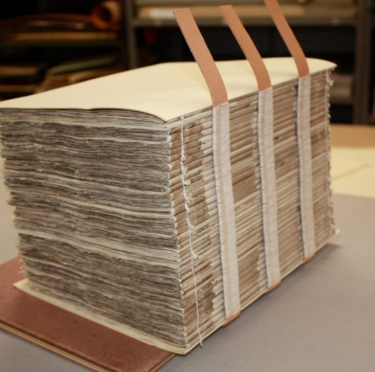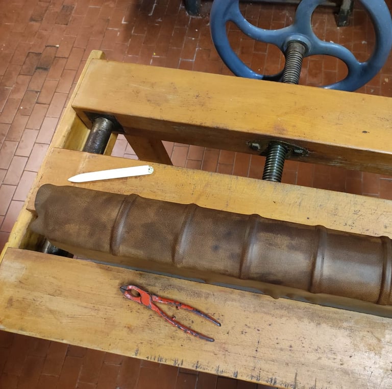 Realizzazione e restauro di legature storiche librarie e d’archivio, scatole e contenitori conservativi su misura.